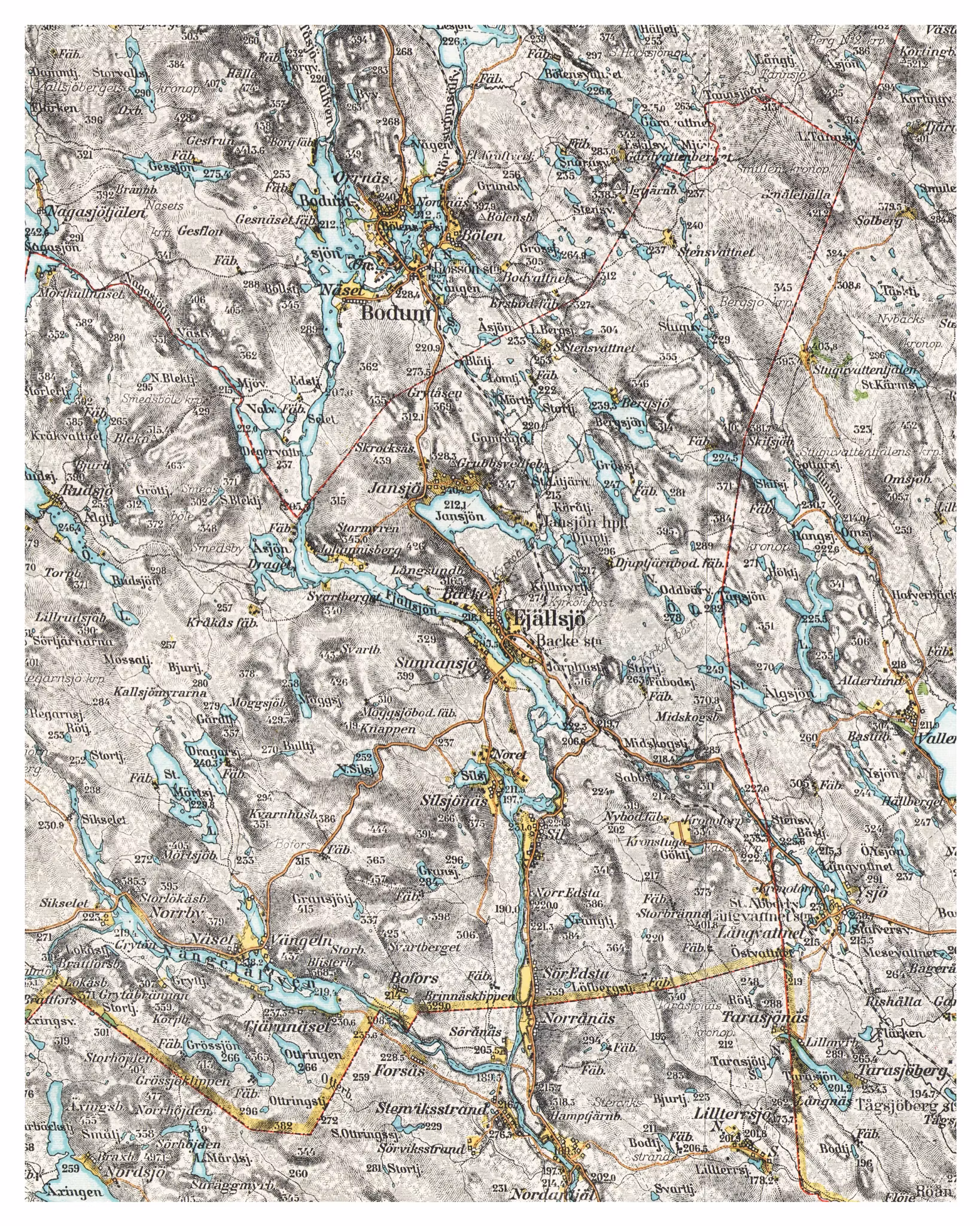 Kartan trycks upp i storleken 40x50 cm på vackert konstpapper och passar i ramar med samma måttangivelse.