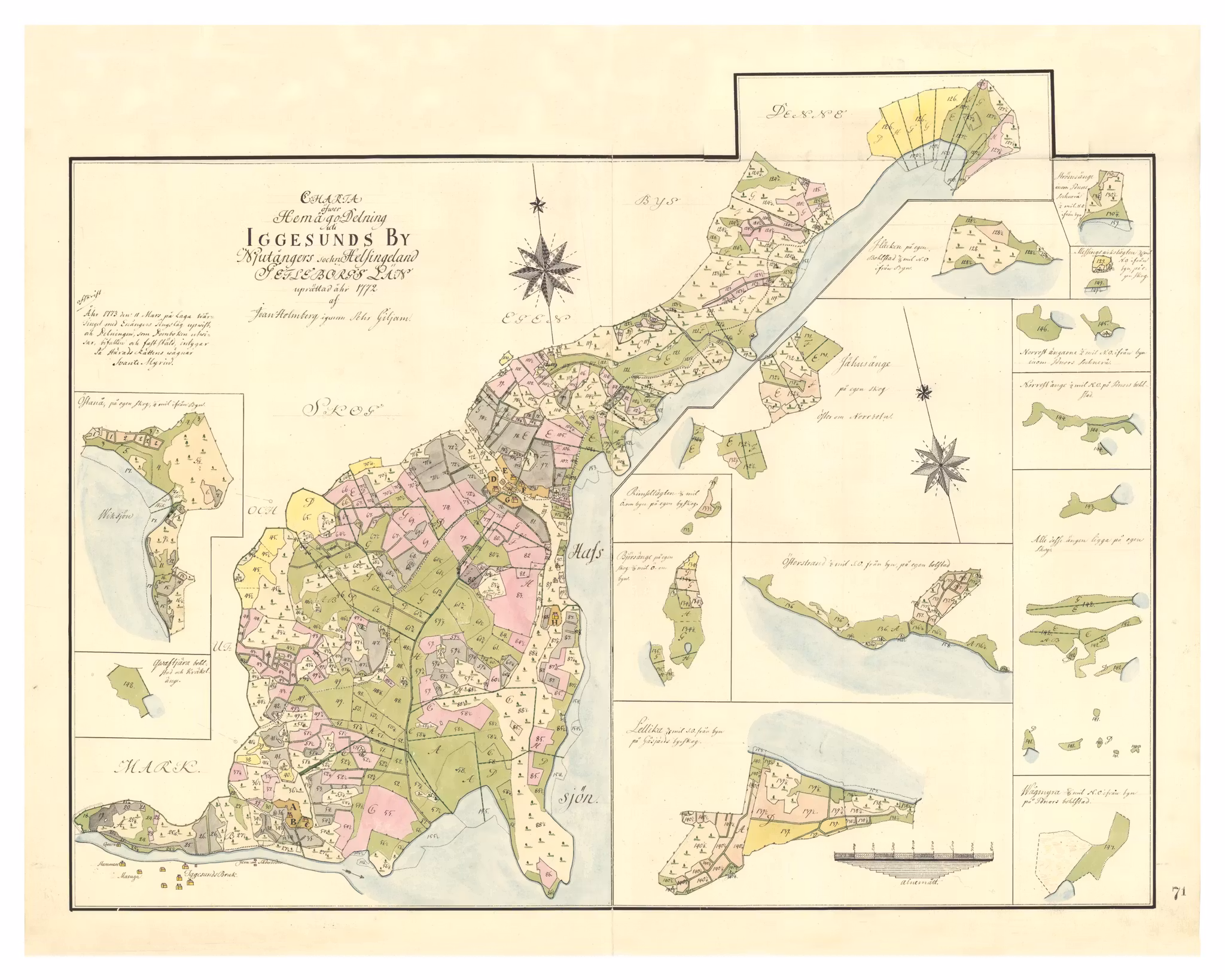 Historisk karta över Iggesund by, år 1766.