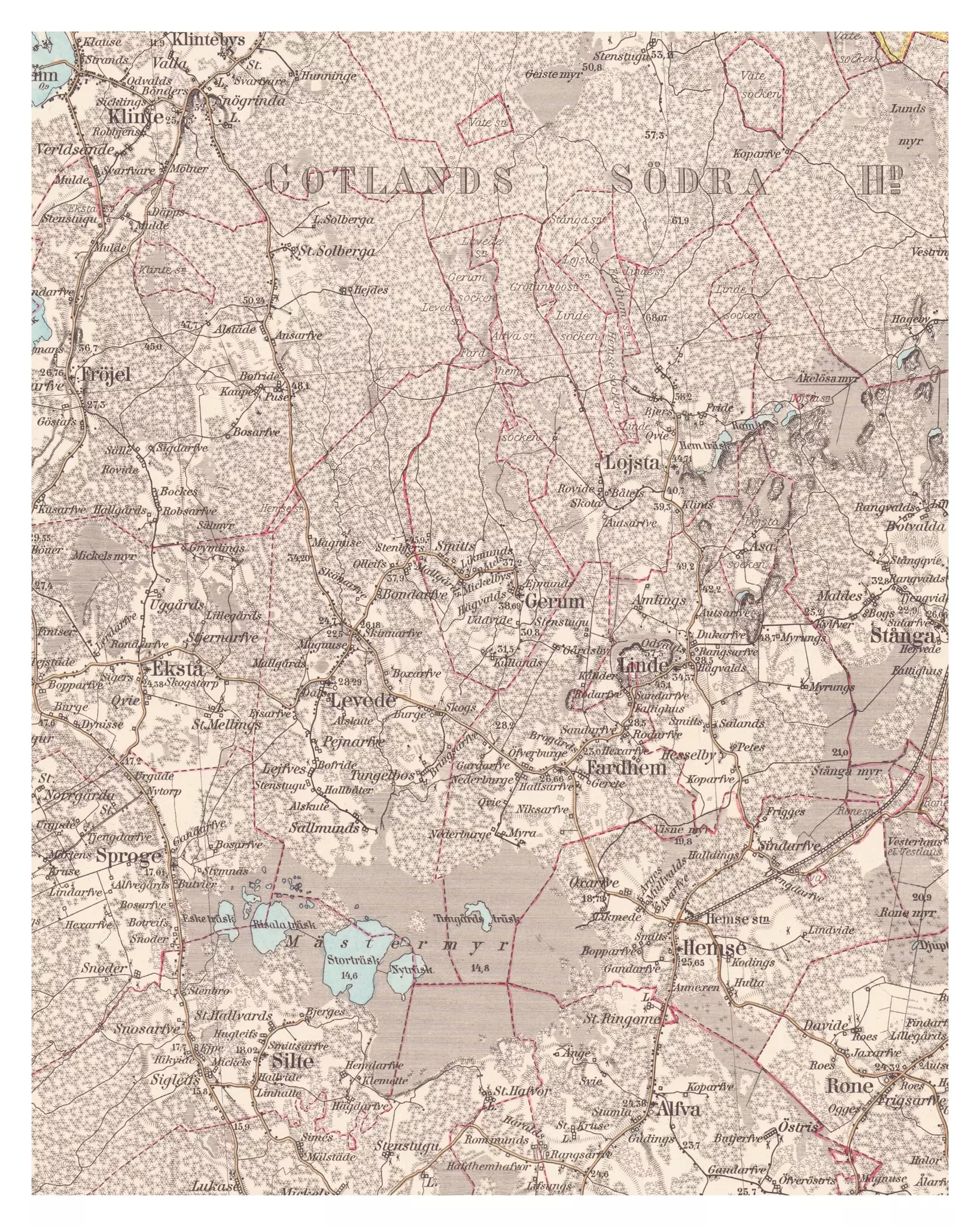 I kartan redovisas de gamla gårdar och byar som vid denna tid fanns. Kartan trycks upp i storleken 40x50 cm på vackert konstpapper och passar i ramar med samma måttangivelse. Kartan är ett utsnitt från den så kallade generalstabskartan, som användes i Sverige mellan år 1827 - 1971 för i huvudsak militärt bruk. Generalstabskartan beskriver naturlandskapet inklusive höjdförhållanden, kommunikationer, bebyggelse och översiktlig markanvändning.