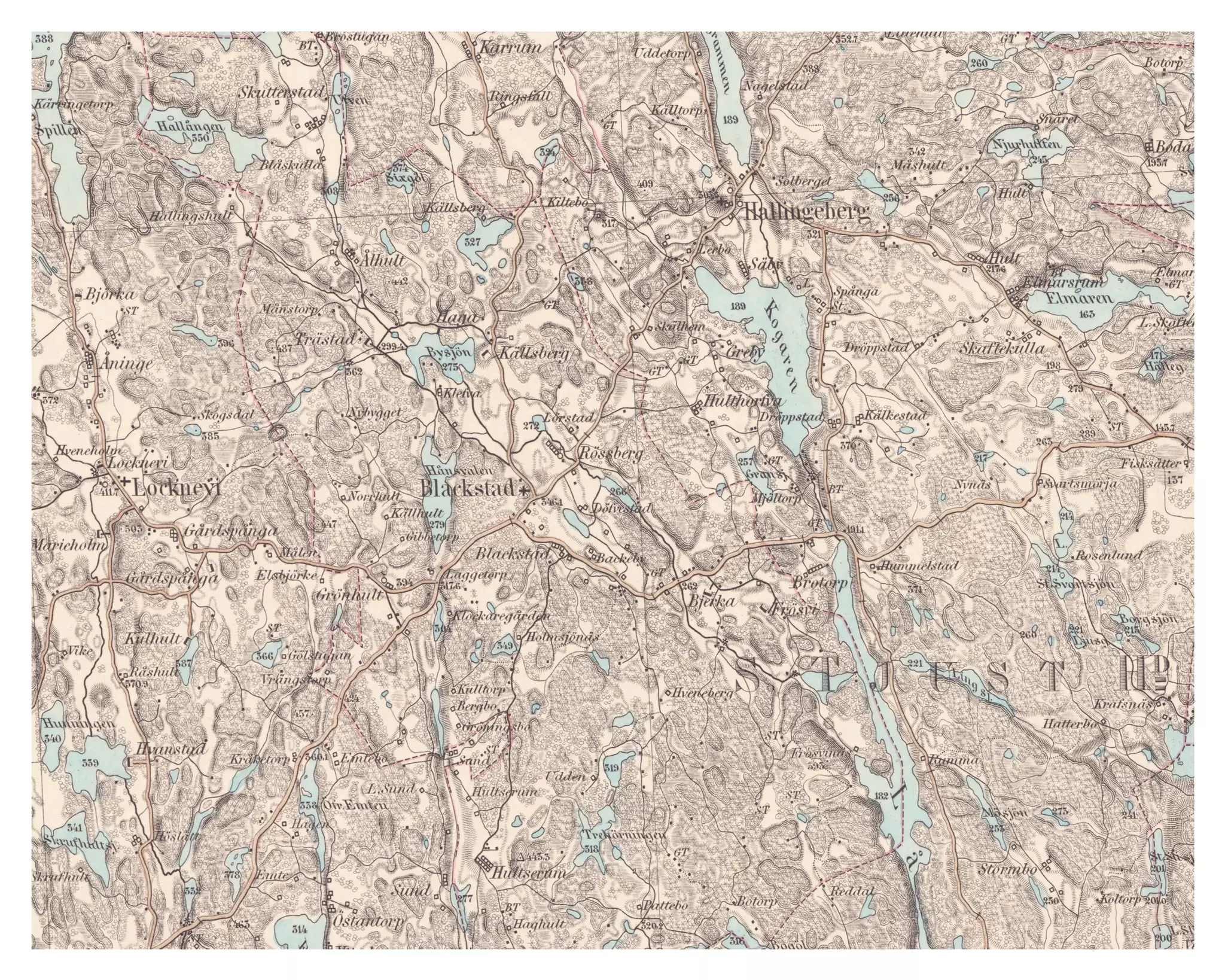 Kartan är ett utklipp från den så kallade generalstabskartan, som användes i Sverige mellan år 1827 - 1971 för i huvudsak militärt bruk. Generalstabskartan beskriver naturlandskapet inklusive höjdförhållanden, kommunikationer, bebyggelse och översiktlig markanvändning.