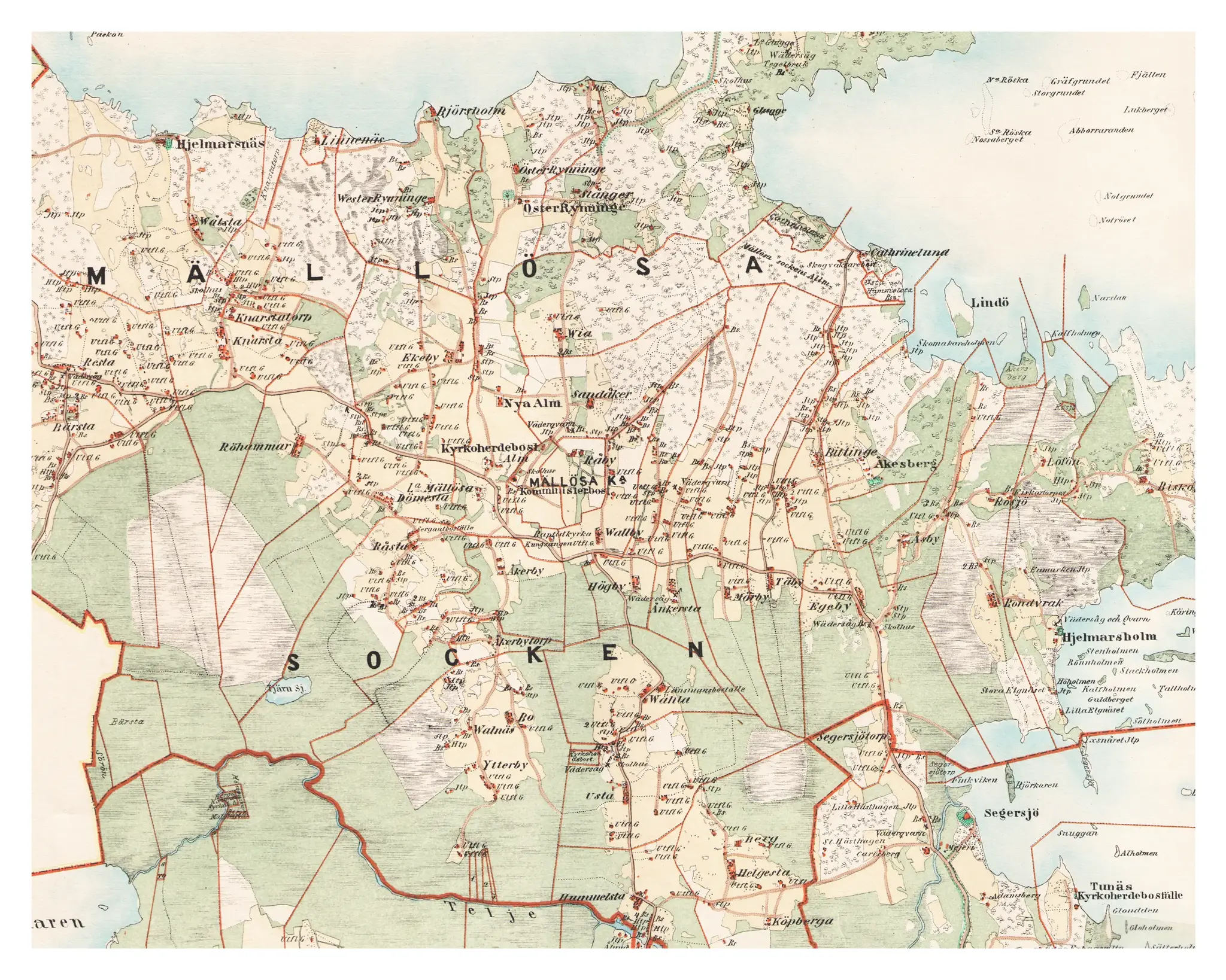 Den historiska kartan trycks upp i storleken 40x50 cm och passar i standardramar med samma måttangivelse. Historiehemmet trycker upp de historiska kartorna på kraftigt, högkvalitativt konstnärspapper från tyska Hahnemühle.