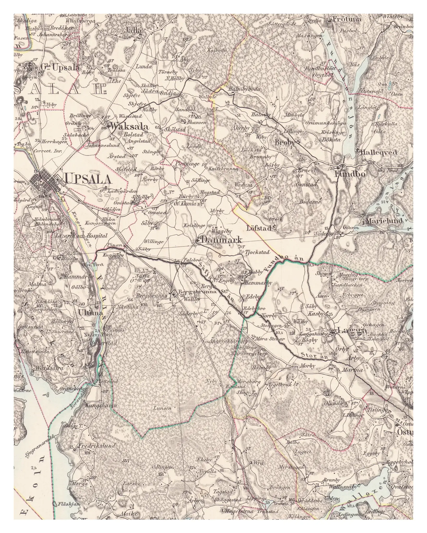Kartan trycks upp i storleken 40x50 cm på vackert konstpapper och passar i ramar med samma måttangivelse.