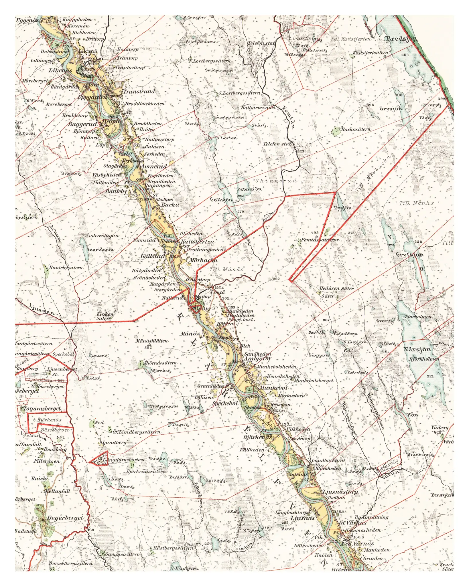 Den historiska kartan trycks upp i storleken 40x50 cm och passar i standardramar med samma måttangivelse. Historiehemmet trycker upp de historiska kartorna på kraftigt, högkvalitativt konstnärspapper från tyska Hahnemühle.