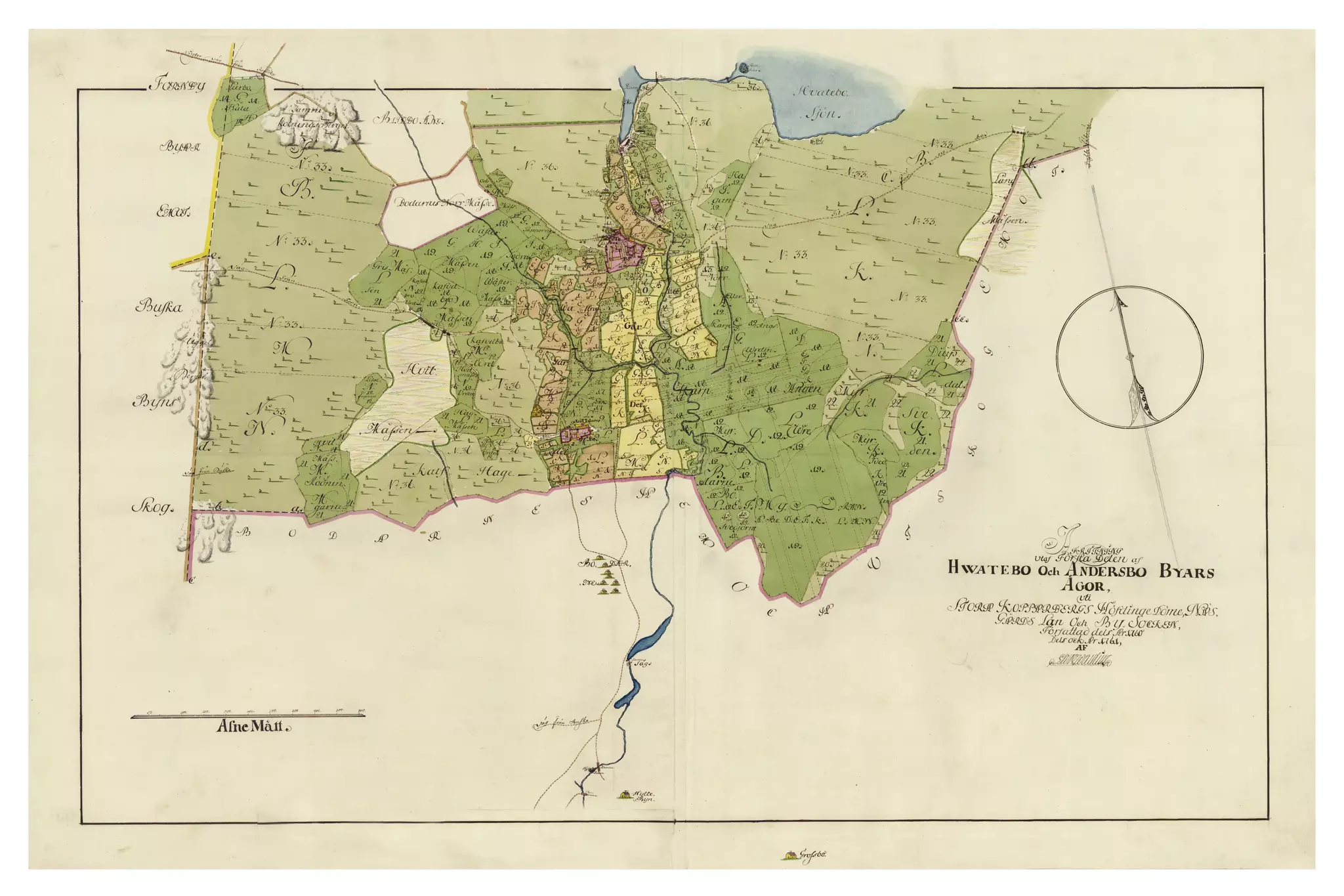 Historisk karta över Vatebo från 1761 i storleken 40x60 cm. (Kartritare: Lars Valdius)