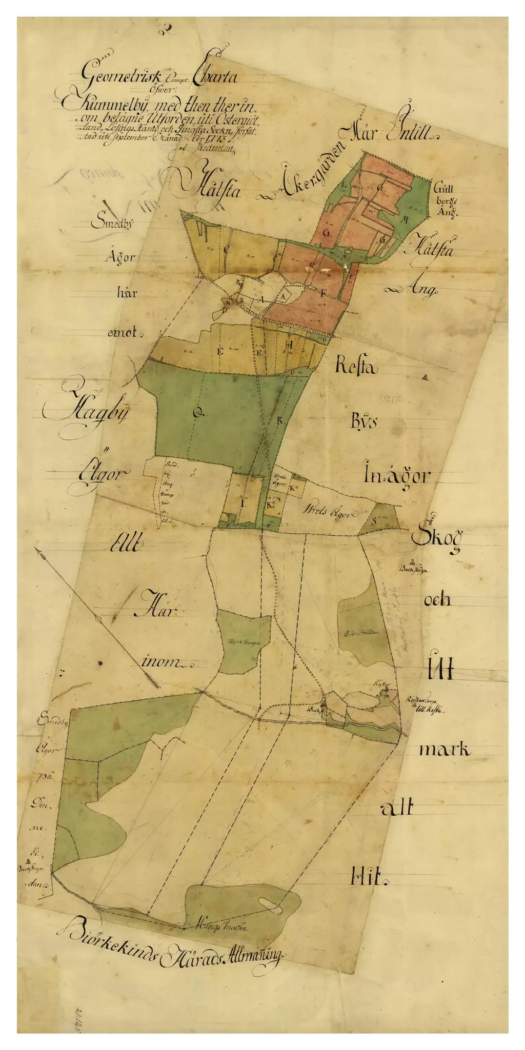 Historisk karta över Kummelby, år 1773 (40x80 cm - Kartritare: Jonas Cederblad)