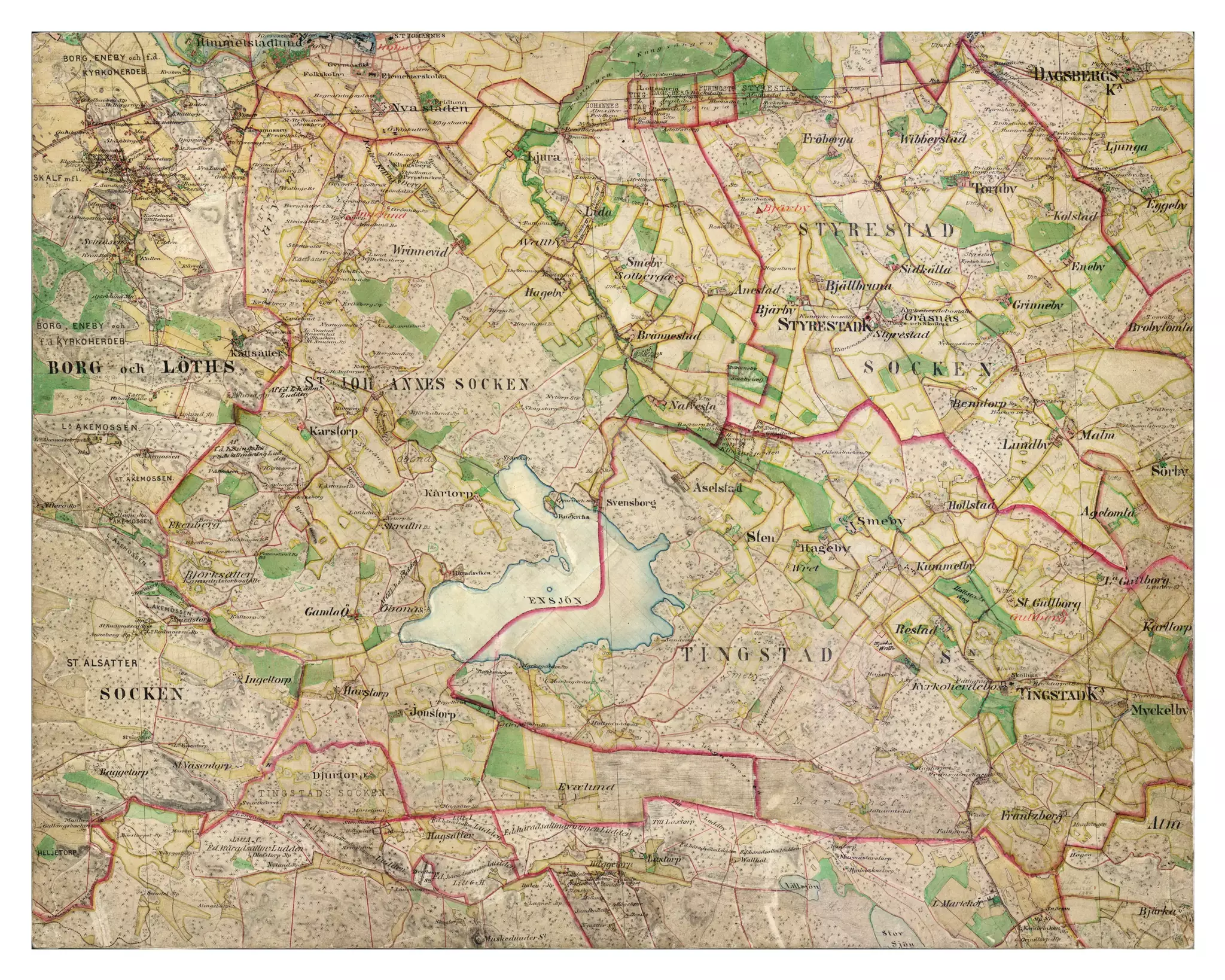 Historisk karta över Tingstad och Styrestad, år 1868-1877 (40x50 cm - Kartserie: Häradsekonomiska kartan)